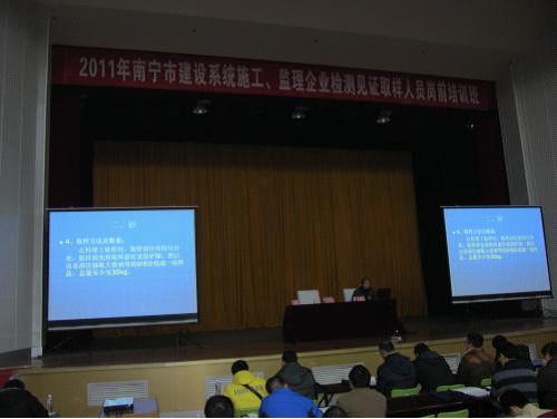 根據(jù)《關(guān)于舉辦2011年施工、監(jiān)理企業(yè)見證取樣人員崗前培訓(xùn)班的通知》,南寧市從2011年12月6日開始,對(duì)南寧市各施工單位、監(jiān)理單位、房地產(chǎn)開發(fā)單位以及市各有關(guān)建設(shè)單位在從事或?qū)氖陆ㄔO(shè)工程見證取樣工作的人員進(jìn)行建設(shè)系統(tǒng)施工、監(jiān)理企業(yè)檢測(cè)見證取樣人員崗前培訓(xùn)及考試。南寧品正參加了第4期培訓(xùn)及考試,參加培訓(xùn)總?cè)藬?shù)達(dá)到84人。