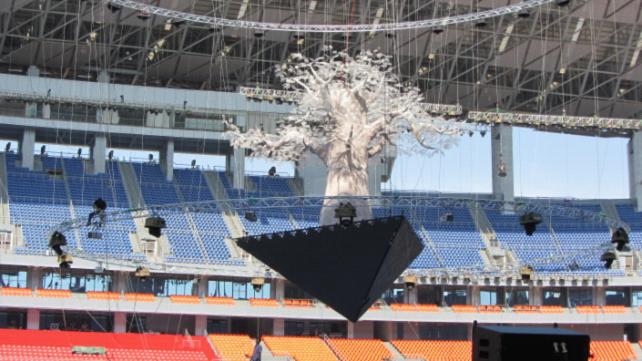 2012南寧國(guó)際民歌藝術(shù)節(jié)開幕晚會(huì)舞臺(tái)重要元素之一——高科技的懸掛道具空中鋼樹