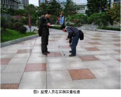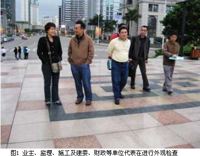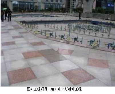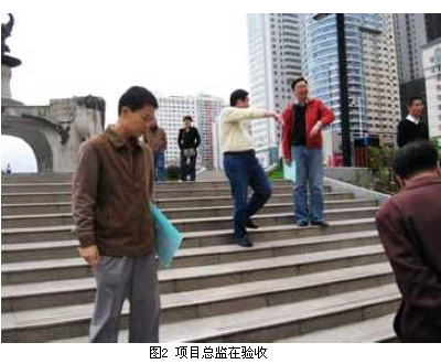 我公司負責(zé)該工程施工階段全過程監(jiān)理。工程內(nèi)容包括①土建維修,它又包括石材鋪裝、路面、噴泉水溝蓋板等維修;②亮化維修;③噴泉水下燈維修;④石凳設(shè)置。為更好地完成監(jiān)理工作,我公司派出了素質(zhì)好、能力強的監(jiān)理人員組建項目監(jiān)理處,他們認真負責(zé)、踏實工作,圓滿完成了監(jiān)理任務(wù),向政府和市民交出了一份滿意答卷。
