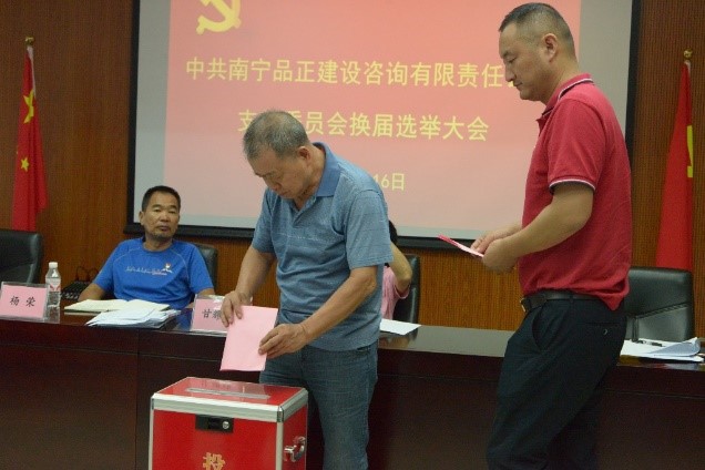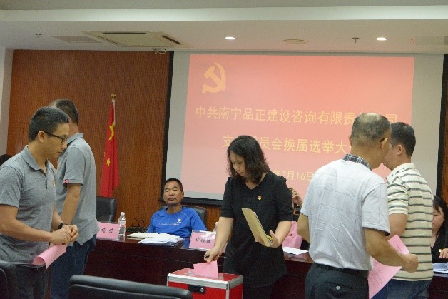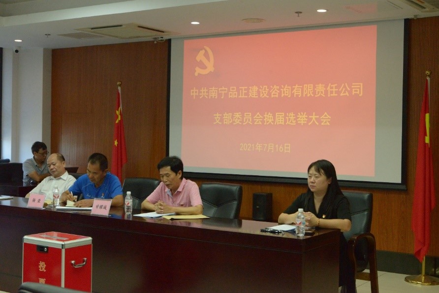 2021年7月16日上午,中共南寧品正建設咨詢有限責任公司支部委員會換屆選舉大會在公司會議室隆重舉行。
