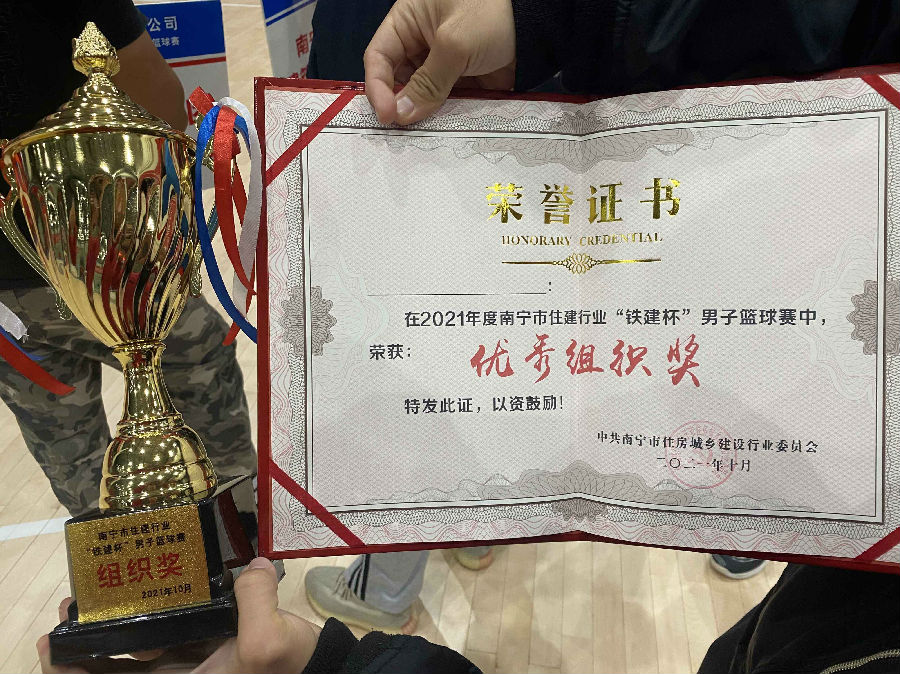 此次“鐵建杯”籃球比賽于10月22日下午圓滿落幕。經(jīng)過四天八場的奮力拼搏,南寧品正籃球隊獲得第四名,榮獲了“優(yōu)秀組織獎”稱號。