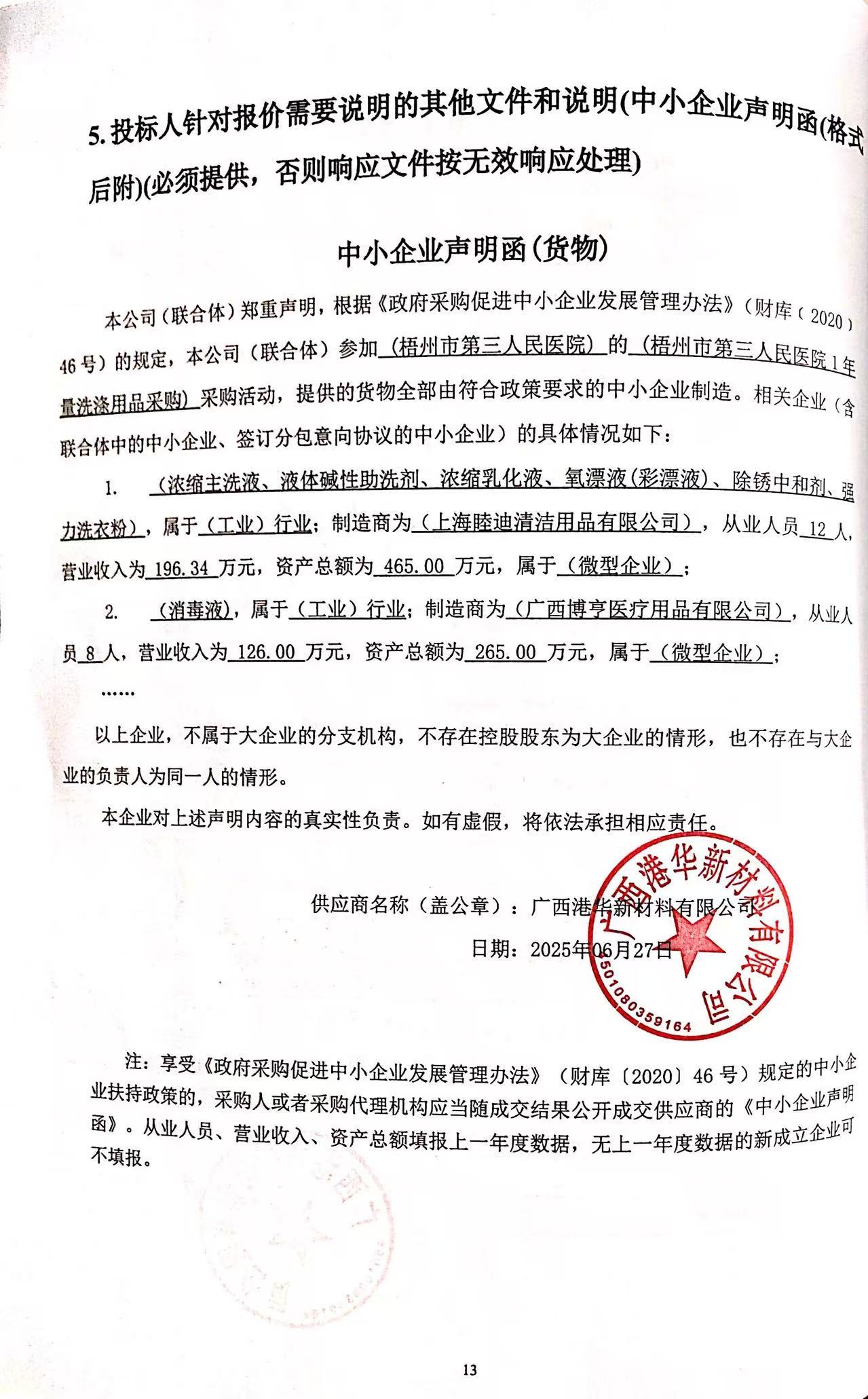 一、項目名稱:梧州市第三人民醫(yī)院1年量洗滌用品采購