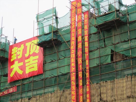 由我司監(jiān)理的靈川縣大圩鎮(zhèn)大圩富鑫苑住宅小區(qū)1#樓工程于2012年4月29日順利封頂,并于當(dāng)日上午9時(shí)18分舉行隆重的封頂儀式。出席封頂儀式的有當(dāng)?shù)卣块T、主管部門、施工單位、各有好合作單位及我分公司領(lǐng)導(dǎo)。各部門領(lǐng)導(dǎo)在儀式舉行后,對(duì)工地進(jìn)行現(xiàn)場參觀檢查,對(duì)工程質(zhì)量及我分公司的工作作出一致好評(píng)。