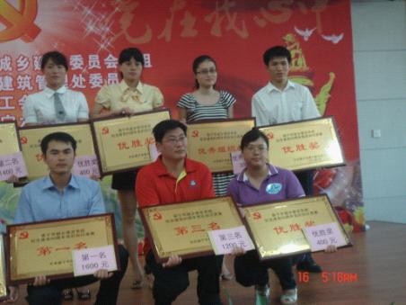 根據(jù)市城鄉(xiāng)建委有關(guān)文件精神,南寧品正黨支部高度重視,于“七一”前夕,精心組織開(kāi)展豐富多彩的活動(dòng)慶祝建黨90周年,取得較好成效。一是組織員工參加市紀(jì)委慶祝建黨90周年暨“南寧清風(fēng)”反腐倡廉書(shū)畫(huà)攝影作品征稿活動(dòng),公司黨支部共報(bào)送一幅書(shū)法,8幅照片,作品以慶祝建黨90周年展黨的輝煌成就,頌清風(fēng)正氣揚(yáng)南寧發(fā)展成果為主題。二是組織10名員工參加市城鄉(xiāng)建委系統(tǒng)合唱隊(duì),隊(duì)員們遵守紀(jì)律,認(rèn)真排練。6月13日,市城鄉(xiāng)建委參加市直機(jī)關(guān)慶祝建黨90周年“綠城紅歌獻(xiàn)給黨”合唱比賽,獲三等獎(jiǎng)。三是組織選派李智、陳倩、黃綿全三名員工參加市城鄉(xiāng)建委系統(tǒng)慶祝建黨90周年黨的知識(shí)競(jìng)賽,獲預(yù)賽第一名,決賽優(yōu)勝獎(jiǎng)和優(yōu)秀組織獎(jiǎng)。四是,南寧品正黨支部與市建設(shè)建筑管理監(jiān)察支隊(duì)黨支部于7月1日在金滿園休閑觀光果園開(kāi)展紀(jì)念建黨90周年暨“結(jié)對(duì)共建,先鋒同行”主題黨日活動(dòng)。雙方單位黨員、入黨積極分子、群眾代表等約70人參加活動(dòng)?;顒?dòng)內(nèi)容有重溫入黨誓詞、唱紅歌、黨史和廉政知識(shí)搶答、文體活動(dòng)等。